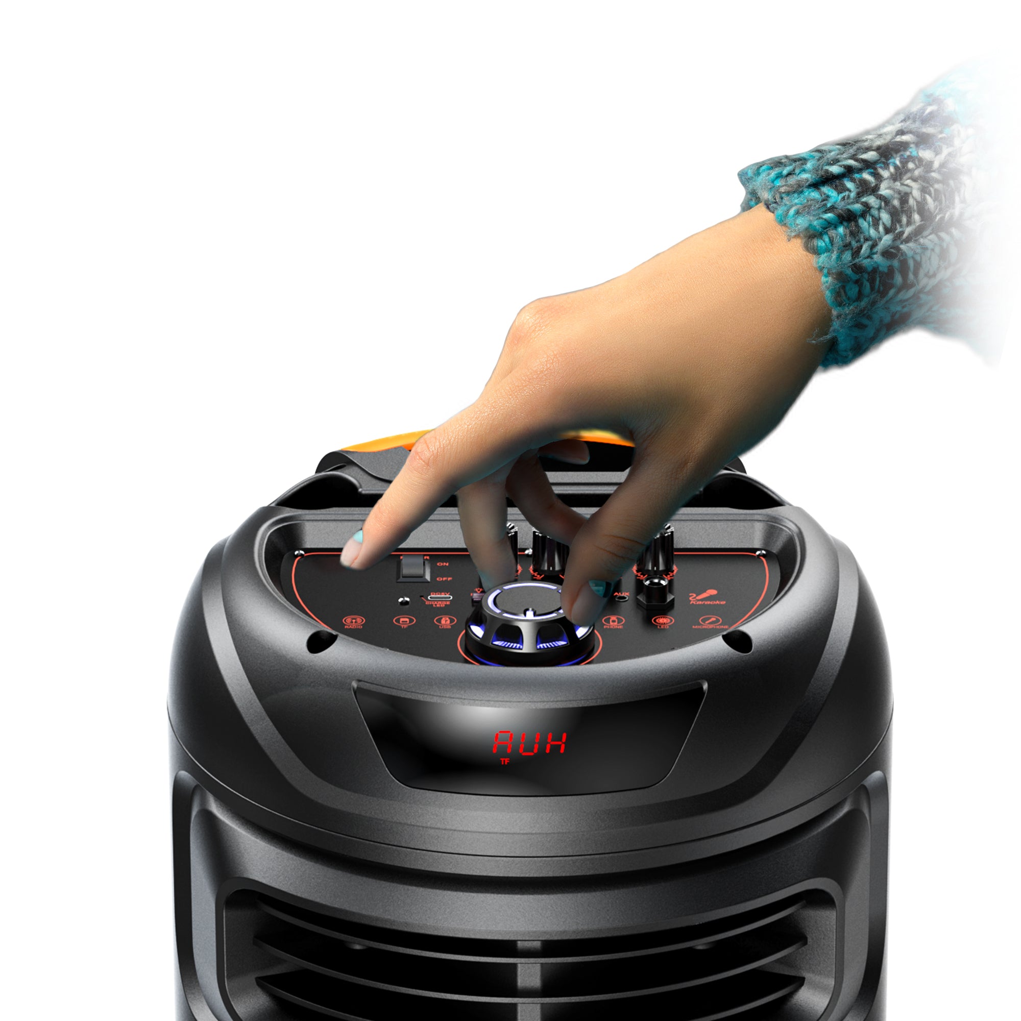 The Audiobox ABX-2900R Dual 8" Portable Bluetooth Speaker Speaker offers comprehensive control over your music playback. With its intuitive user interface, you can easily adjust various settings to tailor the sound experience to your preferences.