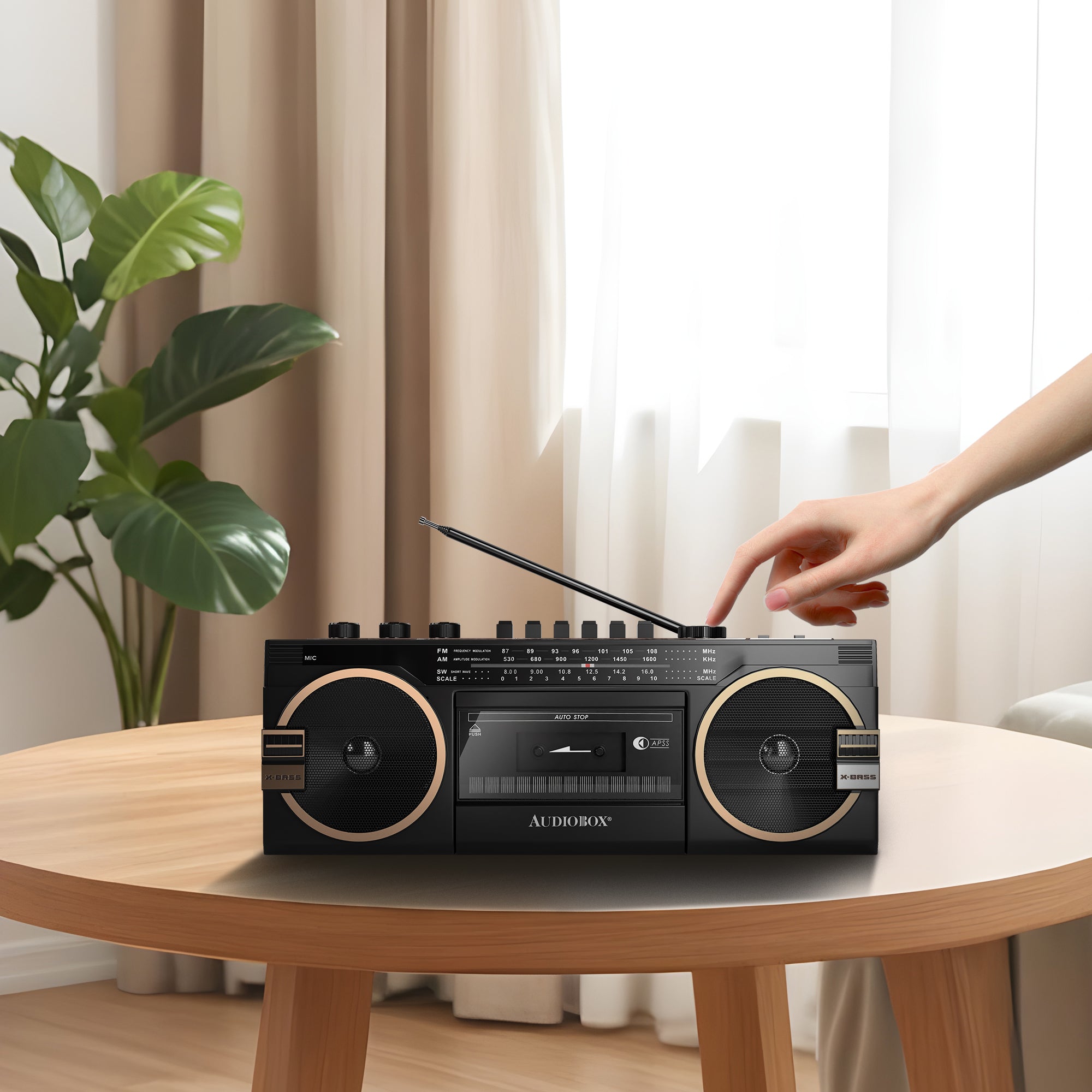 AudioBox RXC-25BT Retrobox 2 Way Speaker System Boombox w/Bluetooth Connectivity, AM/FM/SW Radio, USB and SD Card Connection, & Cassette Player, Black